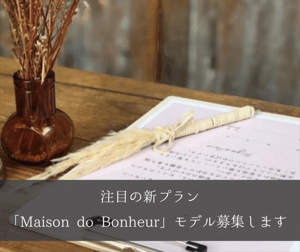 「Maison do Bonheur」をスタートするにあたって、HPなどに使用する宣材写真のモデルになってくださる方を一般募集させていただくことになりました。