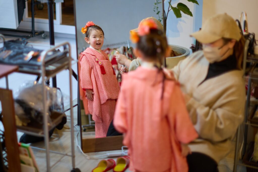 お支度は全てお任せください。プロの技術によってヘアメイク・着付けを行い、可愛さ、良さをより一層引き立てます。